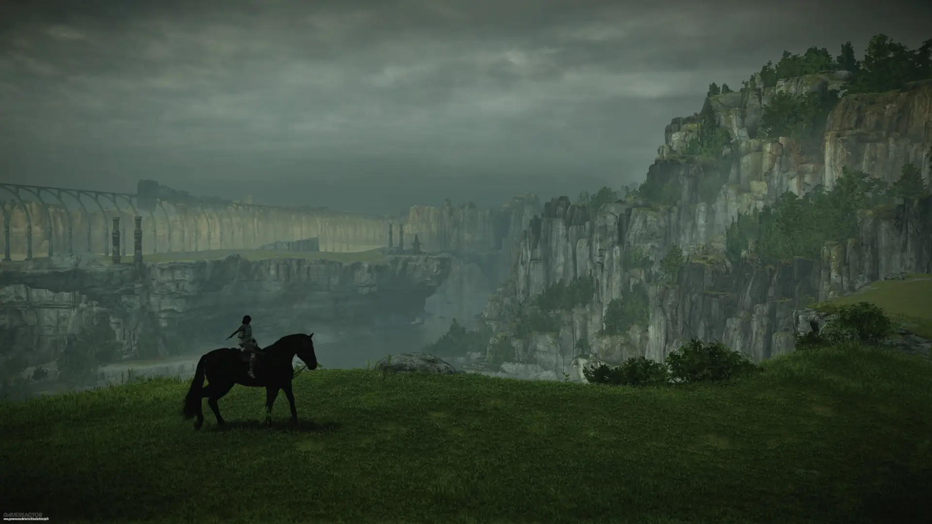 Le jeu s’ouvre sur une très jolie cinématique, franchement pour un vieux machin, c’est beau et très cinématographique. On incarne le jeune Wander accompagné de son fidèle cheval Agro. Il cherche à ressusciter une jeune fille nommée Mono, dont on ne sait pas grand-chose, mis à part qu’elle est morte à cause de son destin « maudit ». On ne connaît pas le lien qui unit nos deux jeunes héros. Après avoir déposé Mono sur un autel dans un immense sanctuaire perdu au milieu de nulle part, une voix (des voix) flippante qui « s’intitule » Dormin, surgit et nous fait son petit laïus avant de nous envoyer tuer 16 Colosses afin de ressusciter notre petite Mono. Alors on prend son dada et son épée et c’est parti pour la chasse aux Colosses !